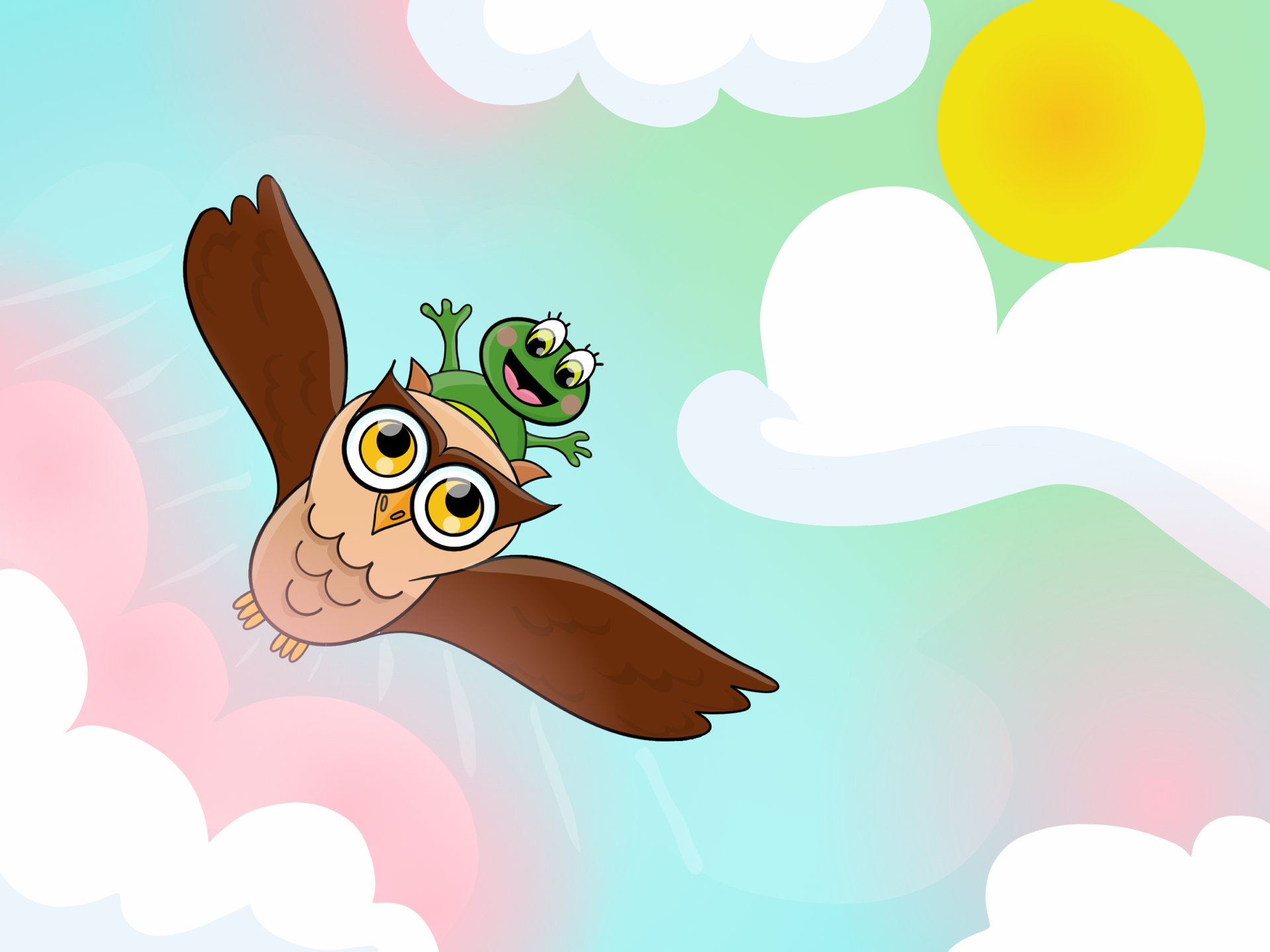Žabka Katka bola šťastná, prešťastná. S pani sovou vyleteli vysoko nad oblaky a spoločne brázdia oblohu ešte dodnes.